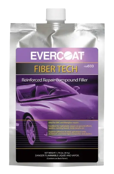 An innovative all purpose repair compound formulated with Kevlar® and other high tech fibers. Its superior strength and adhesion is ideal for repairing SMC, rigid plastic body panels, i.e., ground effects, spoilers, running boards, fenders, hoods, etc. Blue cream hardener included